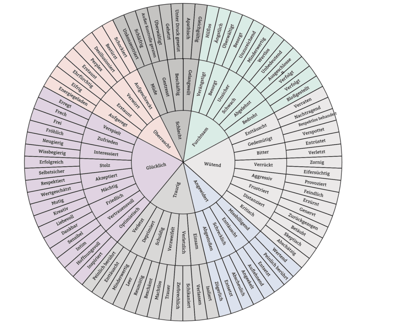 Oft fängst du erst ganz außen an und … nein, warte mal – ich erkläre dir einfach, wie man das Emotionsrad nutzt. 😉